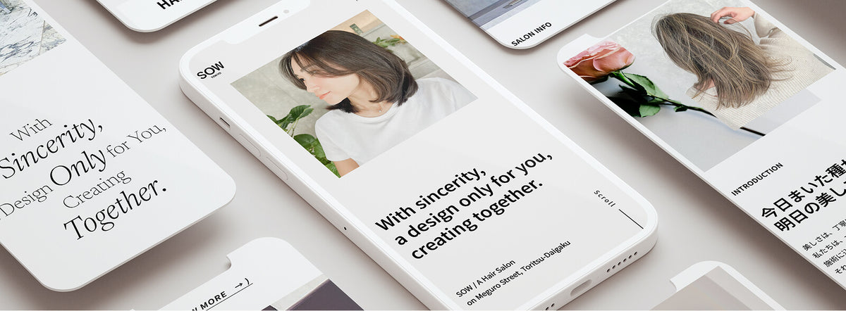 ヘアサロン「SOW」様のサイト制作を担当。“大人がずっと通いたくなるサロン”というコンセプトのもと、設計からライティング・デザイン・実装まで一貫対応。オーナーのお客様へのコミットメントやこだわり、スタッフの高い技術力を丁寧に言語化。都会的でホテルライクな上質感を、大人の女性に響くビジュアルへ落とし込みました。